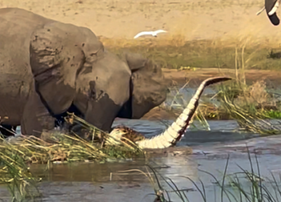 اتفاقی بی سابقه در حیات وحش؛ فیل تمساح را کُشت