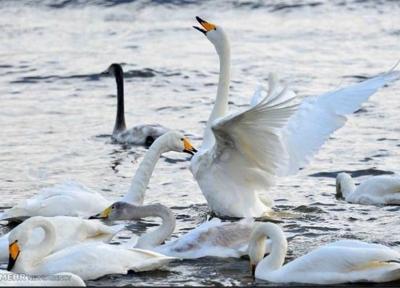 خبرنگاران: در روزهای اخیر، ده ها هزار قوی مهاجر برای سپری کردن فصل سرما و یافتن غذا از سیبری به دریاچه رونگ چنگ در استان شاندونگ چین، نقل مکان کرده اند.