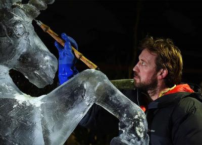 هنرمندی که با یخ مجسمه هایی بی نظیر می سازد