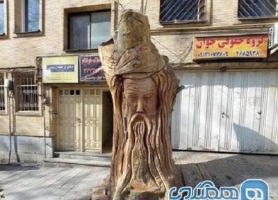 تبدیل بقایای چنار 350 ساله در باغ فردوس به مجسمه مولانا
