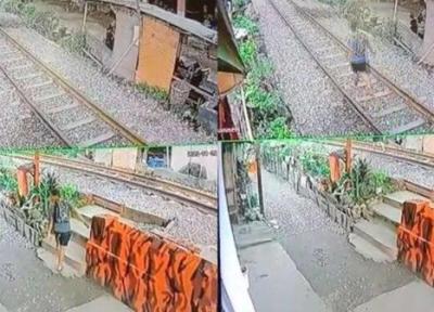 ببینید ، لحظه وحشتناک رد شدن قطار از روی دانش آموز بی خیالی که روی ریل راه می رفت!