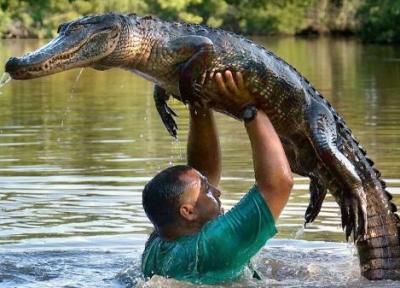 کاربران در شبکه های اجتماعی ویدئویی را منتشر نموده اند که در آن یک مرد آمریکایی اهل فلوریدا در وسط دریاچه با یک تمساح غول پیکر می پایکوبید.