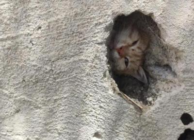 گربه گیر نموده در سوراخ دیوار نجات یافت